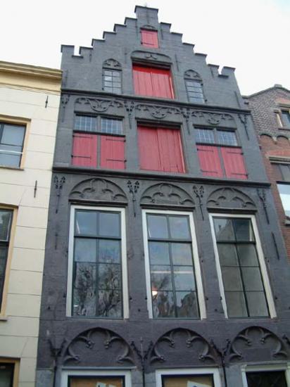 [ORA Dordrecht inv. 736, f. 159: op 29 april 1581 verkoopt Jan van Nuijssenborch Willemsz., als man en voogd van Emmeken Jansdr. en Adriaen Laurensz., als man van Truijchgen Jansdr., aan Willem Willemsz. hellebaardier een huis omtrent de Grote Kerk, staande tussen het huis van burgemeester Willem Stoop Dircxsz. en dat van Truijchgen Ghijsbertsdr., weduwe van Jacob van Bemont.]
