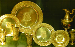 Avondmaal- en doopstel van de Grote Kerk te Dordrecht (1735), ontworpen door Aert Schouman en vervaardigd door de goudsmid Dirck Wor.
