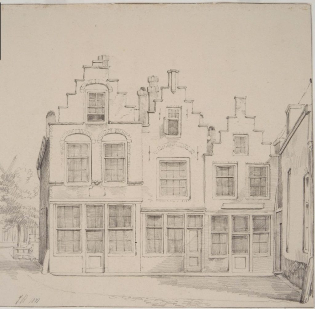De Moordhoek gezien vanuit de Visstraat, door J. Rutten 1871 (foto: RA Dordrecht)
