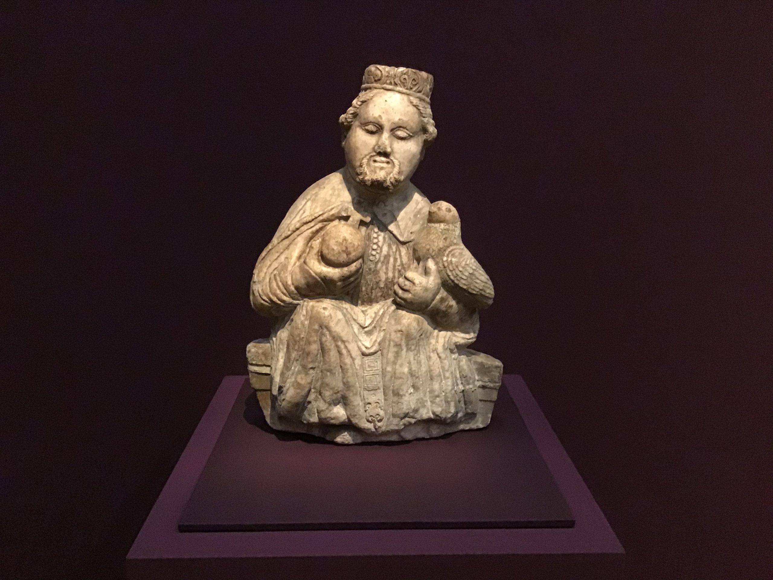 St. Oswald, 14e eeuw. Oswald (Old English: Osuualde[1]; c 604 – 5 August 641/642[2]) was King of Northumbria from 634 until his death, and is venerated as a saint,[3] of whom there was a particular cult in the Middle Ages.[4] Saint Oswald of Northumbria Saint Oswald Durham Cathedral.jpg A 12th-century painting of St Oswald in Durham Cathedral Born c. 604 Deira, Northumbria Died 5 August 641/642 Venerated in Catholic Church, Anglican Communion, Eastern Orthodoxy Canonized Pre-Congregation Major shrine Bardney Abbey, Lincolnshire, England; relics later translated to St Oswald’s Priory, Gloucester, England [1] Feast 5 August Oswald was the son of Æthelfrith of Bernicia and came to rule after spending a period in exile. After defeating the British ruler Cadwallon ap Cadfan, Oswald brought the two Northumbrian kingdoms of Bernicia and Deira once again under a single ruler, and promoted the spread of Christianity in Northumbria. He was given a strongly positive assessment by the historian Bede, writing a little less than a century after Oswald’s death, who regarded Oswald as a saintly king; it is also Bede who is the main source for present-day historical knowledge of Oswald. After eight years of rule, in which he was the most powerful ruler in Britain, Oswald was killed in the Battle of Maserfield. (Wikipedia)