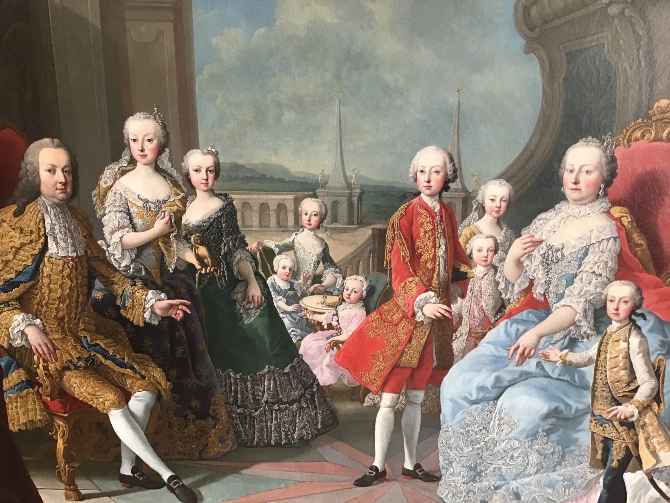 Maria Theresia schonk het leven aan zestien kinderen (elf meisjes, vijf jongens): Maria Elisabeth (5 februari 1737 – 7 juli 1740) Maria Anna (6 oktober 1738 – 19 november 1789) bleef ongehuwd Maria Karolina (12 januari 1740 – 25 januari 1741) Jozef II (13 maart 1741 – 20 februari 1790), keizer van het Heilig Roomse Rijk Maria Christina (13 mei 1742 – 24 juni 1798), vanaf 1766 gehuwd met hertog en landvoogd der Oostenrijkse Nederlanden Albert Casimir van Saksen-Teschen (1738 – 1822) Maria Elisabeth (13 juli 1743 – 25 september 1808), abdis te Innsbruck Karel Josef (1 februari 1745 – 18 januari 1761) Maria Amalia (26 februari 1746 – 18 juni 1804), vanaf 1769 gehuwd met hertog Ferdinand van Parma (1751 – 1802) Leopold II (5 mei 1747 – 1 maart 1792), keizer van het Heilig Roomse Rijk, gehuwd met Marie Louise van Spanje Karolina (17 september 1748, overleden dezelfde dag) Johanna Gabriella (4 februari 1750 – 23 december 1762) – verloofd met koning Ferdinand I der Beide Siciliën (1751 – 1825) Maria Josepha (19 maart 1751 – 15 oktober 1767) – verloofd met koning Ferdinand I der Beide Siciliën Maria Carolina (13 juli 1752 – 7 september 1814) – in 1768 gehuwd met koning Ferdinand I der Beide Siciliën Ferdinand Karel (1 juni 1754 – 24 december 1806), gehuwd met Maria Beatrice d’Este, enig kind en erfgename van Ercole III d’Este, hertog van Modena (1750 – 1829) Marie Antoinette (Maria Antonia) (2 november 1755 – 16 oktober 1793) – 1770 gehuwd met Lodewijk XVI, koning van Frankrijk (1754 – 1793) Maximiliaan Frans, (8 december 1756 – 27 juli 1801), aartsbisschop, keurvorst van KeulenMartin van Meytens, het gezin van Maria Theresia, ca. 1751