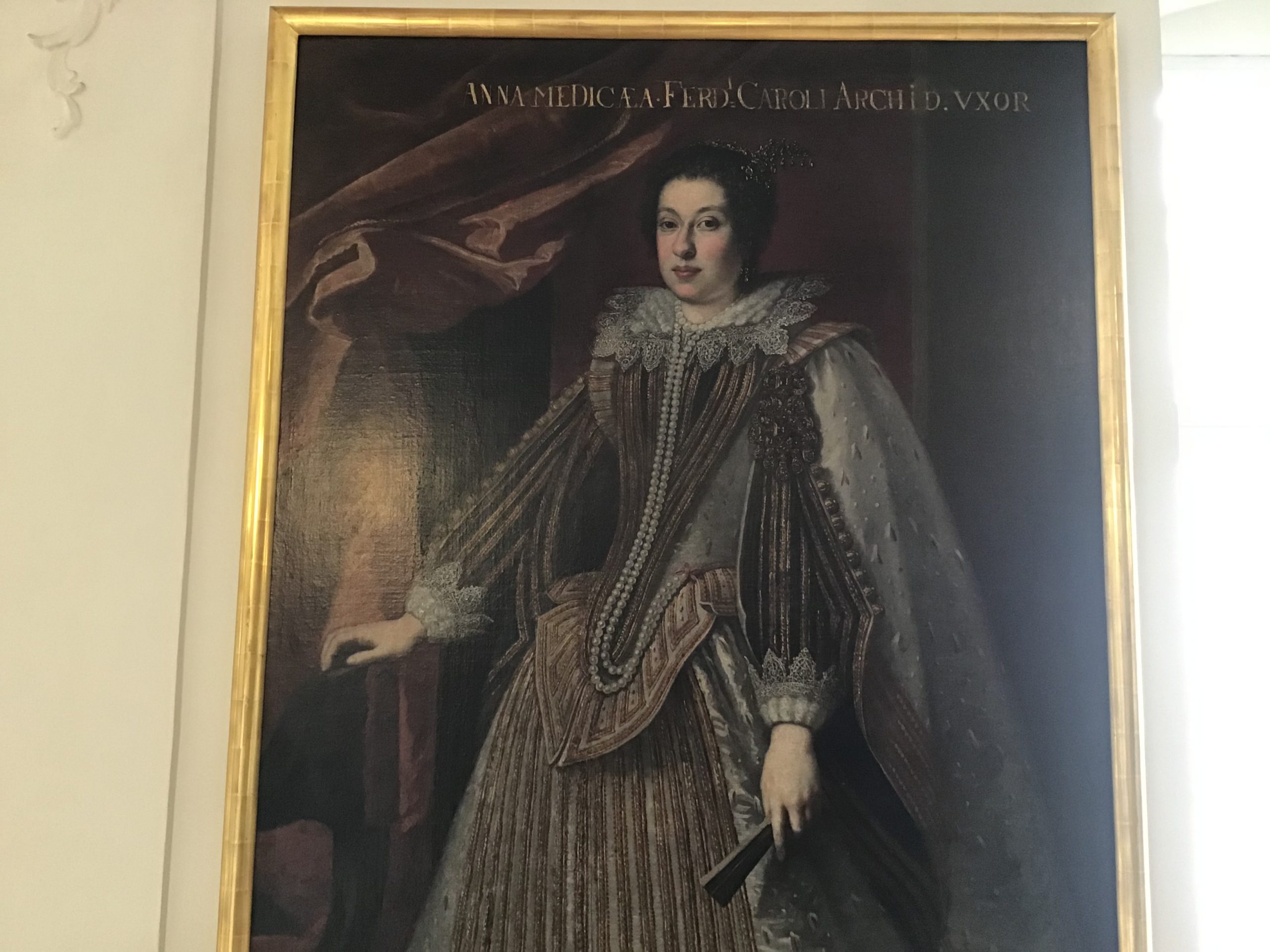 Anna de’ Medici (21 July 1616 – 11 September 1676) was a daughter of Cosimo II de’ Medici, Grand Duke of Tuscany and his wife Maria Maddalena of Austria. A patron of the arts, she married Ferdinand Charles, Archduke of Further Austria in 1646. They were the parents of Claudia Felicitas of Austria, Holy Roman Empress. Anna de’ Medici Archduchess of Further Austria Countess of Tyrol Justus Sustermans – Anna de’ Medici, wife of archduke Ferdinand Charles of Austria.jpg Anna in circa 1630 by Medici court painter Justus Sustermans Born 21 July 1616 Palazzo Pitti, Florence, Tuscany Died 11 September 1676 (aged 60) Vienna, Austria Spouse Ferdinand Charles, Archduke of Further Austria Issue Claudia Felicitas, Holy Roman Empress Archduchess Maria Magdalena Full name Anna de’ Medici House House of Medici House of Habsburg Father Cosimo II of Tuscany Mother Maria Maddalena of Austria Contents Biography Edit Early life Edit Princess Anna was born on 21 July 1616 at the Palazzo Pitti in Florence, then the capital of Tuscany. Her father was Cosimo II de’ Medici, he had been the reigning Grand Duke of Tuscany since 1609. Anna’s mother was Maria Maddalena of Austria, a daughter of Charles II, Archduke of Austria, and a sister of Emperor Ferdinand II. Her Medici and Habsburg ancestry was a common pairing among seventeenth century marriages in her family; indeed, she herself would come to marry a Habsburg, as would her daughter. Her father died on 28 February 1621, causing her mother and grandmother Grand Duchess Christina to serve as regents until the majority of Anna’s brother was reached. It was said that Anna and her sister Margherita inherited from Maria Maddalena her good qualities and marked abilities.[1] Marriage Edit Following failed plans for Anna to marry Gaston, Duke of Orléans,[2] she was instead engaged to Archduke Ferdinand Charles of Austria. In 1646, Anna left her native Florence for Innsbruck to be married. On 10 June, she was married to her double first cousin Ferdinand Charles, Archduke of Further Austria. He was the eldest son of Leopold V, Archduke of Austria and his wife Claudia de’ Medici. Anna was thirty years old, while Ferdinand Charles was only eighteen. The match was negotiated by Ferdinand Charles’ formidable mother, who had been regent of Further Austria and Tyrol since Leopold’s death in 1632.[3][4] Claudia had ruled the duchy well in her regency from 1632 to 1646, and was successful in keeping Tyrol out of the Thirty Years War.[4] During the year of their marriage, Ferdinand Charles took over his mother’s governatorial duties and became the ruler of Tyrol and Further Austria, as he was now of age.[3] Anna and Ferdinand Charles had three daughters. The couple preferred the attractions of the opulent Tuscan court to the mountains of Tyrol, and consequently were more often at Florence than at Innsbruck.[5] As a result, their eldest daughter was born in Anna’s home court, not Ferdinand Charles’. Widowhood Edit Anna de’ Medici in widow garb, c. 1666. Painted by Giovanni Maria Morandi. In 1662, Ferdinand Charles died. As they had only two surviving daughters, his younger brother Archduke Sigismund Francis inherited his titles as Count of Tyrol and Archduke of Further Austria.[3] On the eve of his marriage to another princess however, Sigismund Francis died in 1665. This meant that the county reverted to direct rule from Vienna, despite the efforts of Anna to preserve some vestige of power for herself as Dowager Countess. Her attempts to persuade Vienna also stemmed from the fact that Anna wanted to protect the rights of her two daughters.[3] This dispute would not be remedied until 1673, when her only surviving daughter Claudia Felicitas (Maria Magdalena had died in 1669) married Leopold I, Holy Roman Emperor, the man responsible for the seizure of the County.[3] Anna not only survived her husband by fourteen years but also outlived her eldest daughter, who would die soon after her marriage. On 11 September 1676 in Vienna, Anna died aged sixty. Patron of the arts Edit Like many Medicis, Anna was a great lover and patron of the arts. For instance, a collection of monodies by Pietro Antonio Giramo, entitled Hospedale degli Infermi d’amore, was dedicated to Anna in Naples in the mid-seventeenth century (the specific date is unknown); it humorously presented the various forms of insanity caused by love.[6] In the collection, Giramo’s dedication to Anna seemingly referred to a flirtatious young lady when he mentions