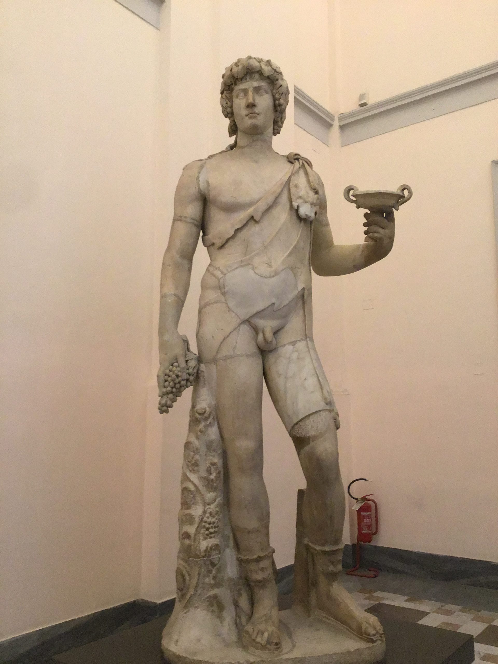 Statue of Antinous (Delphi), polychrome Parian marble, made during the reign of Hadrian (r. 117-138 AD)