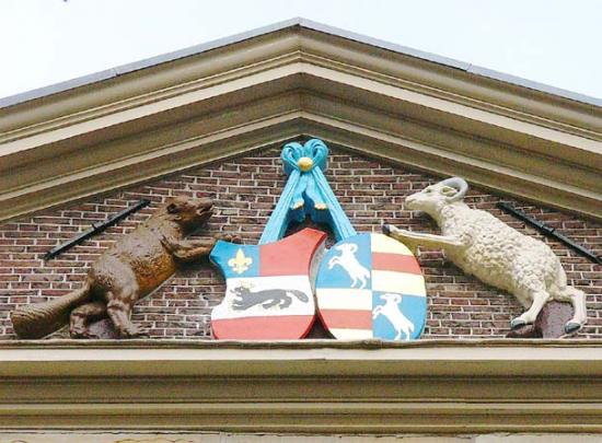 De heer W. van der Kaa heeft een interessante theorie over de gevelversiering. Volgens hem stelt die niet een zeemeermin en een meerman voor, maar twee tritons, die in een innige omhelzing verstrengeld zijn, en dat zou dan een heimelijke verwijzing zijn naar de homoseksualiteit (of biseksualiteit) van Willem van Beveren. (Zie Van der Kaa, o.c., p. 5 e.v.) Een sterk argument voor deze theorie is, dat beide figuren paardenbenen hebben (dergelijke mythische wezens worden derhalve ook wel zeecentauren genoemd), hetgeen bij afbeeldingen van zeemeerminnen nooit voorkomt (vriendelijke mededeling W. van der Kaa). Inmiddels is de interpretatie van de heer Van der Kaa in bredere kring geaccepteerd, hetgeen moge blijken uit de volgende vermelding in het “Programma Open Monumentendagen Dordrecht”, uitgegeven door Dordrecht Marketing in september 2014: “Boven de deur twee zeemeermannen, blij elkaar weer te zien.”(ABdH, 26 mrt. 2015)